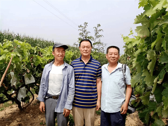 王勇(右一)和马保良(左一)在葡萄园。