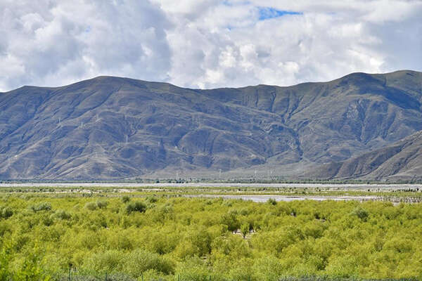 2021年7月19日拍摄的雅鲁藏布江山南段公路两旁的绿色长廊。(新华网发)