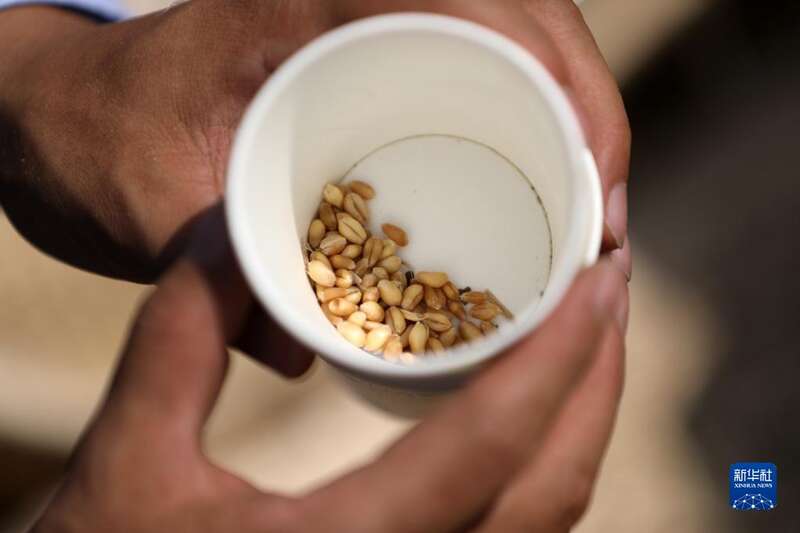 6月2日,在山东省临沂市郯城县郯城街道,裁判组工作人员扬去杂质提取麦粒,测算减损率。新华社发(张春雷摄)