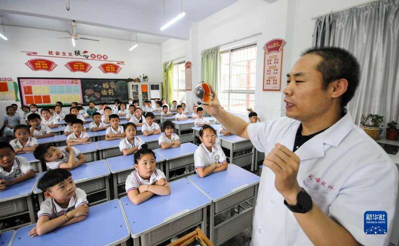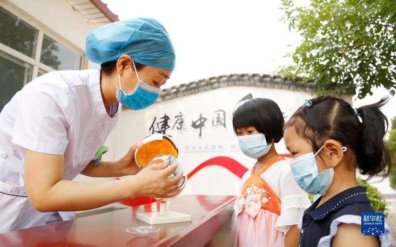 6月5日,河北省邢台市南和区人民医院医务人员深入乡村开展基层义诊活动,为贾宋镇苏史张村小朋友讲解眼睛的结构和功能。