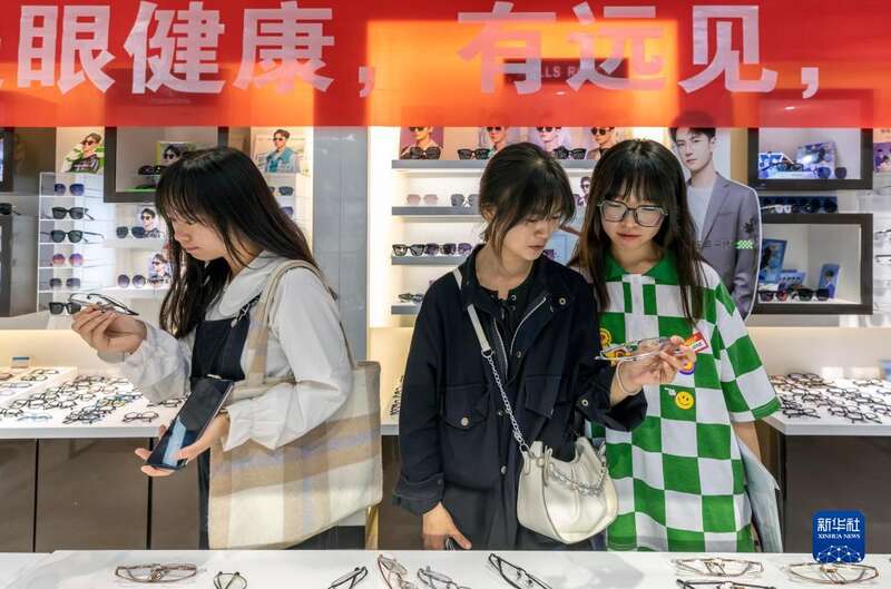 6月5日,学生在贵州省黔西市一家眼镜店内选配眼镜。