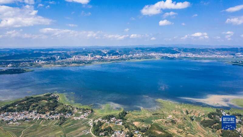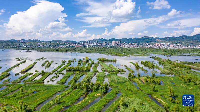 毕节市草海国家级自然保护区景色(2019年6月19日摄,无人机照片)。