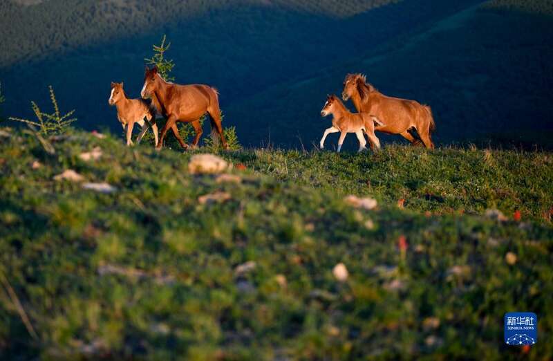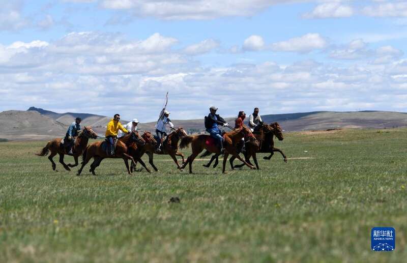 6月5日,在丰宁满族自治县坝上草原,游客在骑马游玩。