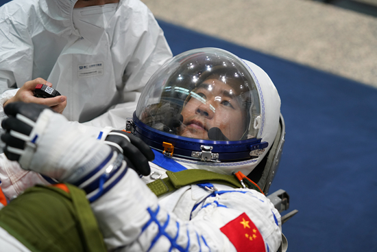 2021年8月14日,陈冬舱内服气密性检查。孔方舟/摄