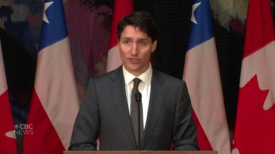 特鲁多在6日发表讲话,指责我空军 CBC视频截图