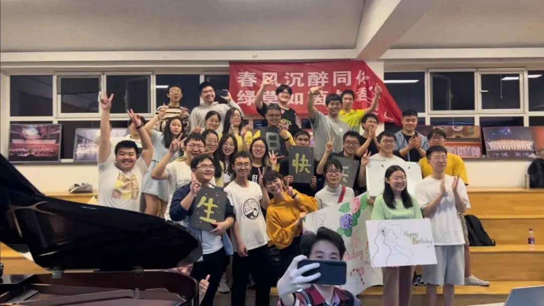 声乐课的同学们在线下给付老师过生日