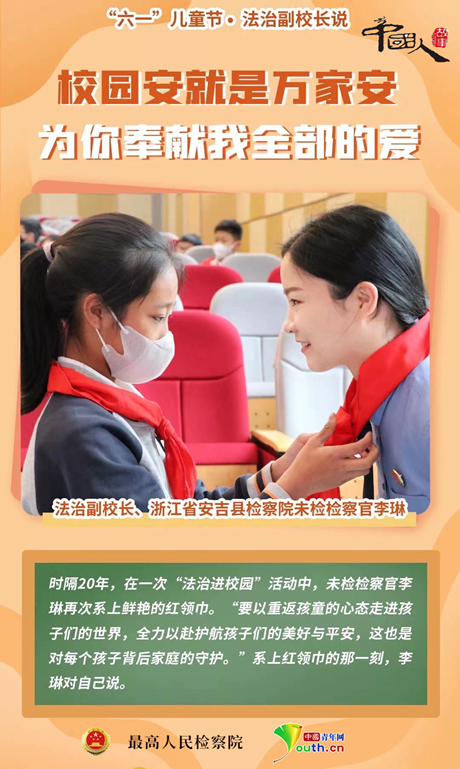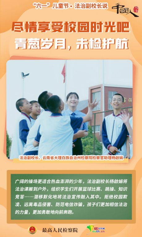 教室里、操场上……检察官们走进校园、走进课堂,用专业知识为师生提供法治支持,帮助孩子扣好人生“第一粒扣子”。他们正在为少年撑起一把把坚实的守护伞。