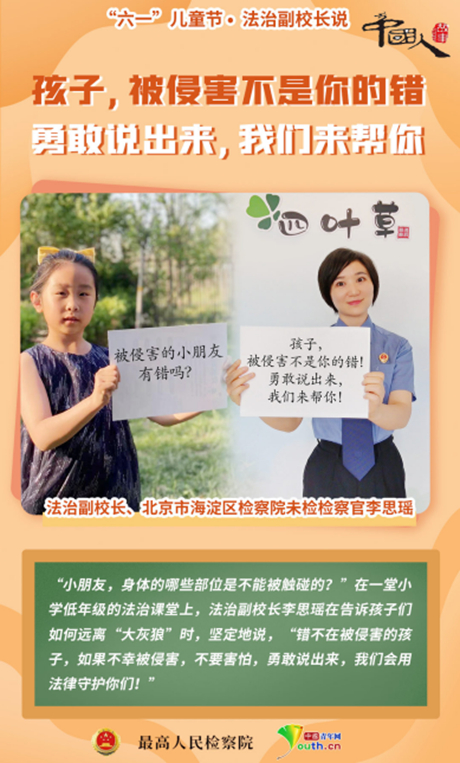 “从哪些细节可以看出孩子可能遭遇了性侵害或校园欺凌?该如何通过教育和引导进行预防?”“遭受校园欺凌怎么办?”“遇到危险如何保护自己?”……今年,未成年人新“两法”已实施一年,中国青年报·中国青年网联合最高人民检察院、全国妇联、知乎,对未成年人保护相关案例、典型人物进行报道,聚焦性侵害、校园欺凌及心理保护等热点问题,体现全社会对侵害未成年人权益行为的“零容忍”。透过“守护‘少年的你’”系列问答,让我们一起走近检察官们的工作日常,一起听法治副校长们给小朋友们带来的暖心叮嘱。