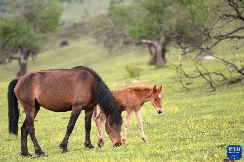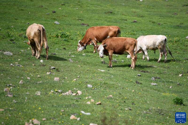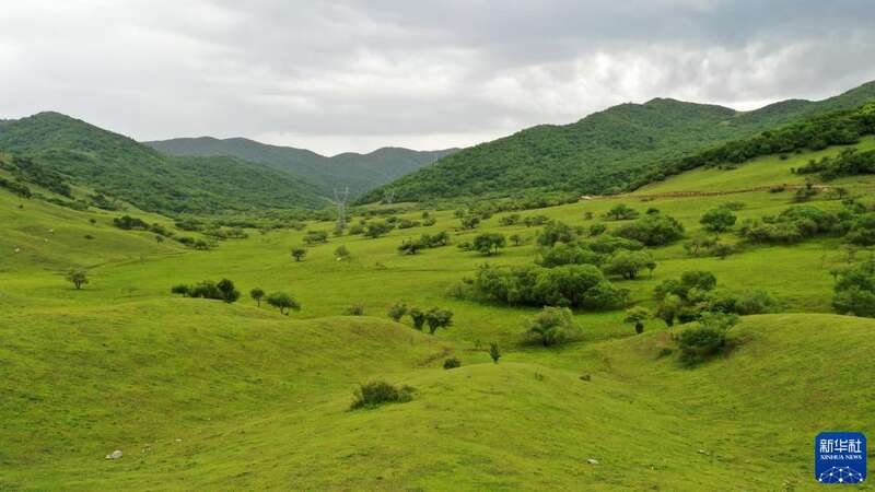 夏日,在甘肃省天水市张家川回族自治县境内,关山绿茵似毯,牛马散落,山间森林、草原、溪涧等自然景观构成了一幅美丽画卷。