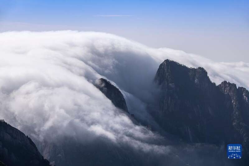 黄山的“瀑布流云”景观(2018年11月20日摄)。