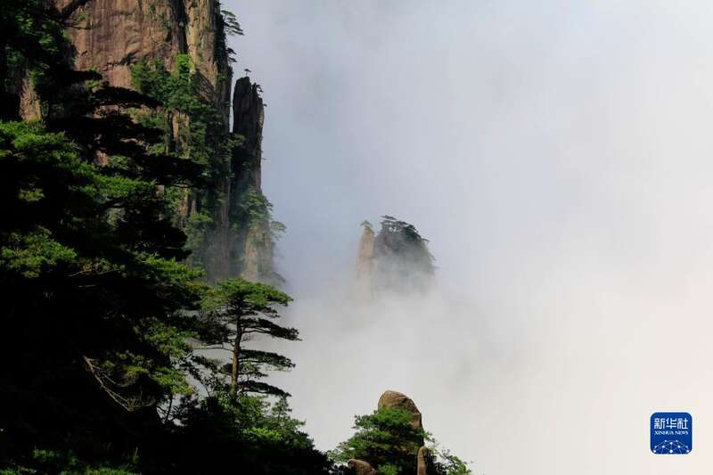 黄山雨后放晴,山峦叠翠,云雾缥缈(2019年6月14日摄)。
