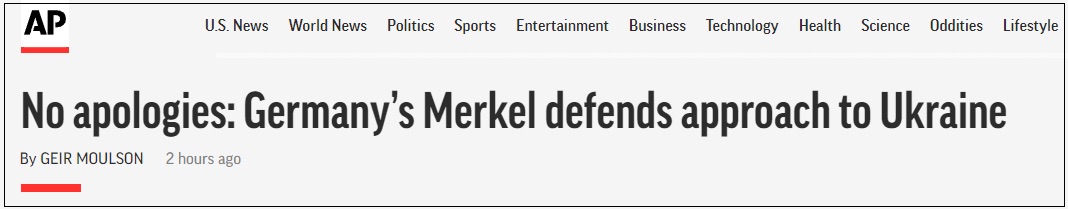谈及对乌克兰政策的细节时,默克尔承认她的政策并不完全符合乌克兰的利益,但她觉得现在人们的批评并不公平,“在当时,它(明斯克协议)带来了和平。而且它还给乌克兰争取了大量时间——整整7年,然后才有了今天的乌克兰。如果当时没有干预,普京在乌克兰的行动只会更加顺利。”