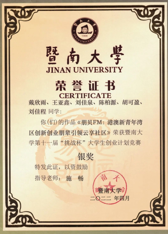 第十一届“挑战杯”大学生创业计划竞赛校赛银奖