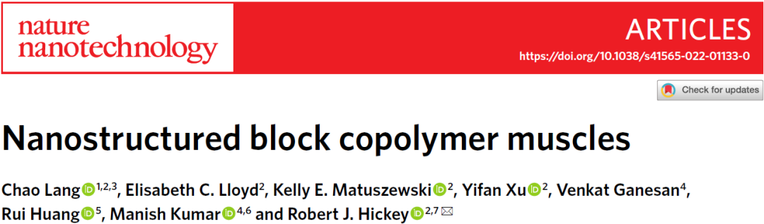 近日,华南理工大学前沿软物质学院(华南软物质科学与技术高等研究院)郎超教授团队通过简洁的两步法制备了可回收的高性能自组装人工肌肉,不但力学和致动性能在多方面超越天然肌肉,还具有不同的响应性和致动模式,为开发动态仿生材料提供了新的思路。该成果由郎超教授联合宾夕法尼亚州立大学Robert J. Hickey教授,以前沿软物质学院为第一完成单位,在《Nature nanotechnology》上发表了题为“Nanostructured block copolymer muscles”(纳米嵌段聚合物人工肌肉)的文章。
