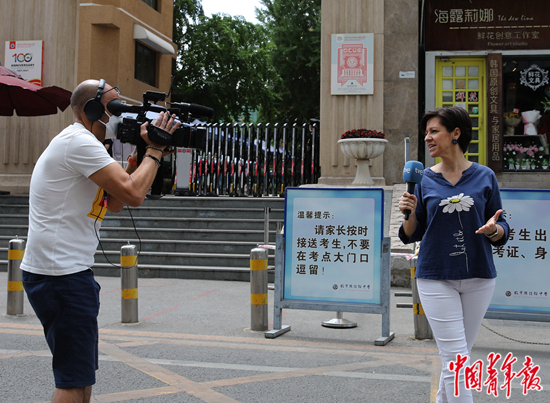 而那些因为疫情不能陪伴在孩子身边的家长,也在用自己的方式表达着对考生的支持。一名在海淀区某封控管控考点外执勤的民警说,今年北京高考首日数学考试结束后,一名考生在窗口挥舞着红色的衣服,为等在酒店楼下的家长“报喜”,家长也“隔空”为其加油打气。这样特别的考后“交流”,相信也会成为他们人生中一段难忘的回忆。