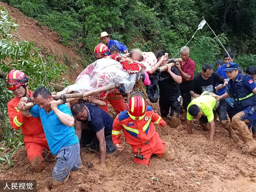 2022年6月9日,广西玉林市消防救援支队协助了人民群众救出1名被困女性伤员,道路泥泞,大家将伤员举高至头顶,开展“接力式”救援,最终将该女子安全送至道路通车区,移交给现场医护人员。