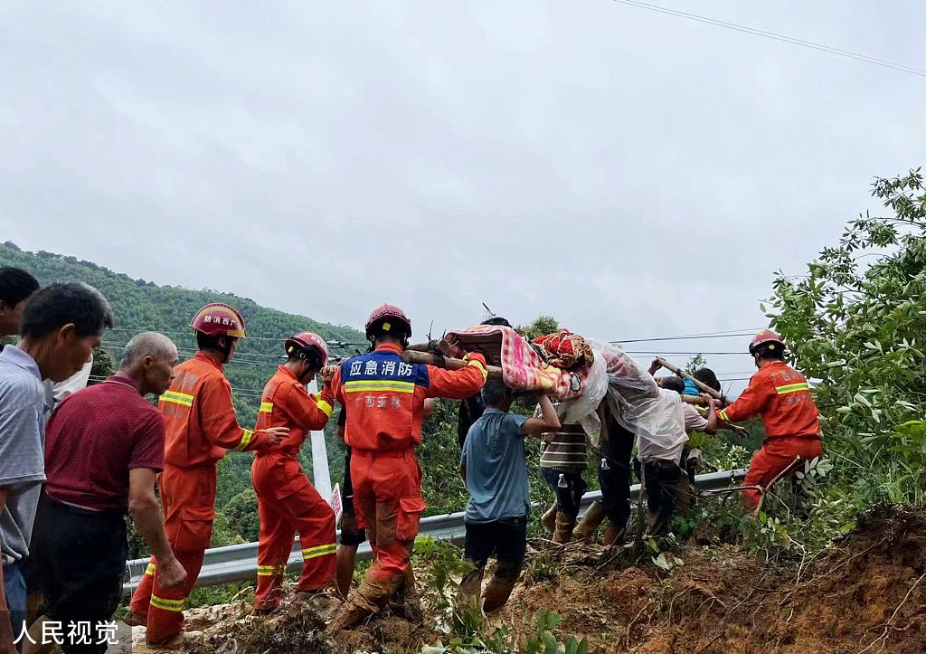 2022年6月9日凌晨,广西玉林市消防救援支队指挥中心接到报警,北流市隆盛镇、新丰镇部分村庄受暴雨影响,道路塌方受阻,有人员被困,灾情就是命令,时间就是生命,当地政府、消防、公安、医疗人员立即赶赴现场。由于道路多处塌方,救援车辆在距离大村约十公里处无法前行,只能徒步行进。