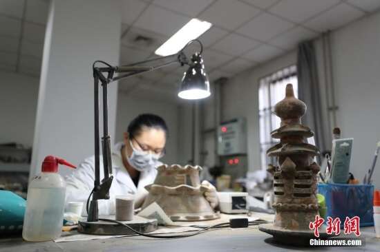 在宁夏博物馆,一共有12名文物修复师,专门负责馆藏文物的修复。他们每天埋头伏案,用细心、耐心和专业的技术手段,让湮没于岁月灰尘下的辉煌历史见证物在当代重生。 中新社记者 于晶 摄