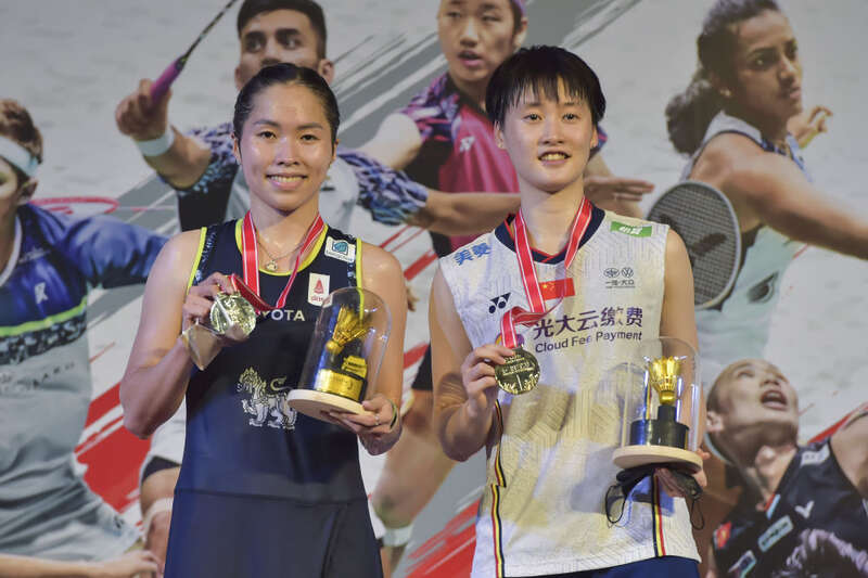 ↑陈雨菲(右)和因达农在颁奖仪式上合影。