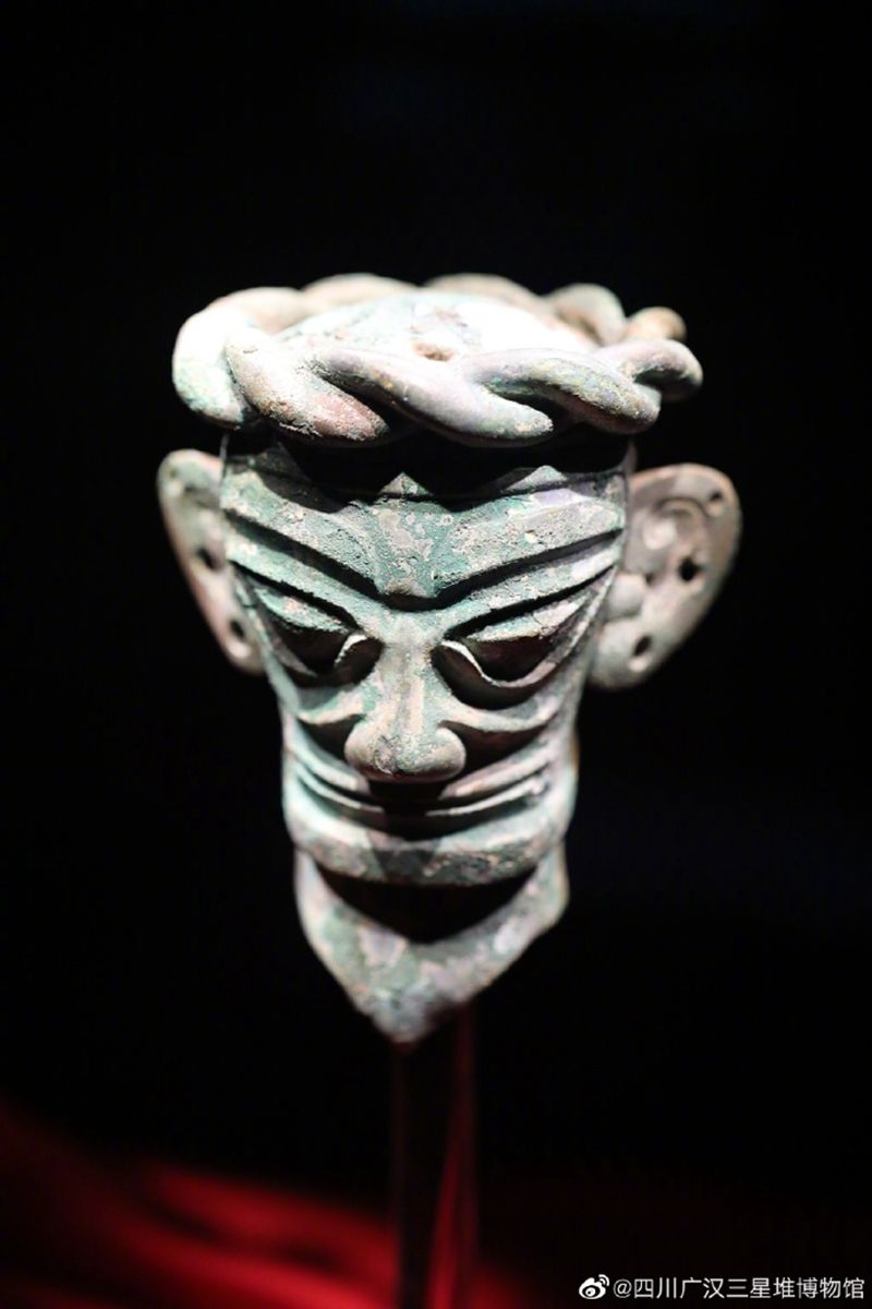 发型千千万,三星堆出土中分发型人物。