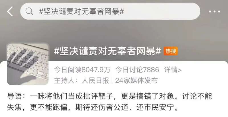红星新闻在评论中表示:面对一起恶性暴力事件,愤怒是一种本能,但并不意味着愤怒没有边界,甚至变为网暴。我们不能一边声讨违法者,又一边在违法的边缘试探。