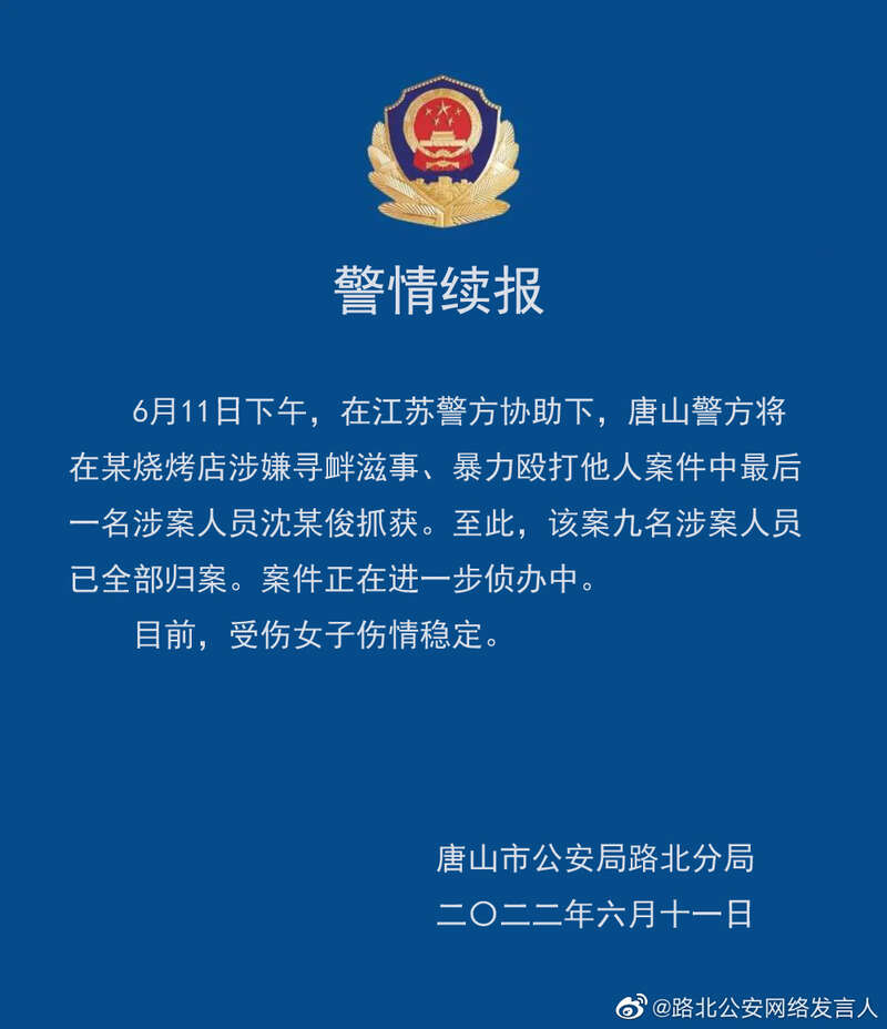 发生在6月10日凌晨的这起暴力事件,被唐山警方初步定性为“寻衅滋事、暴力殴打他人”案件。