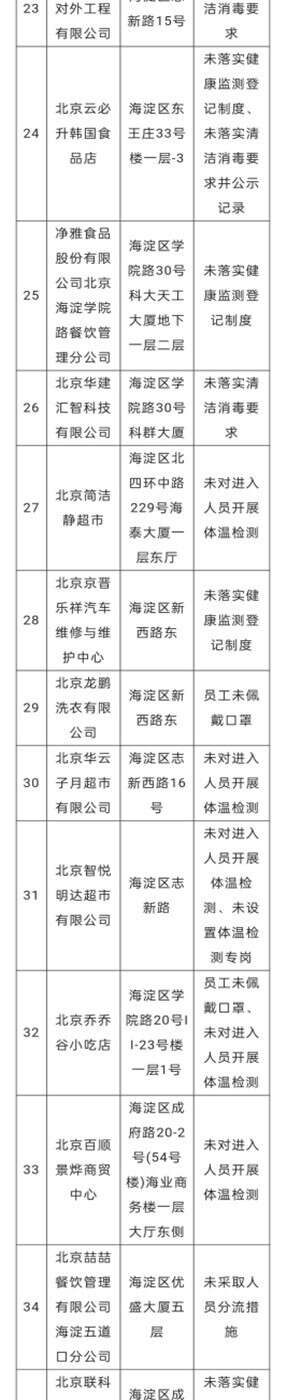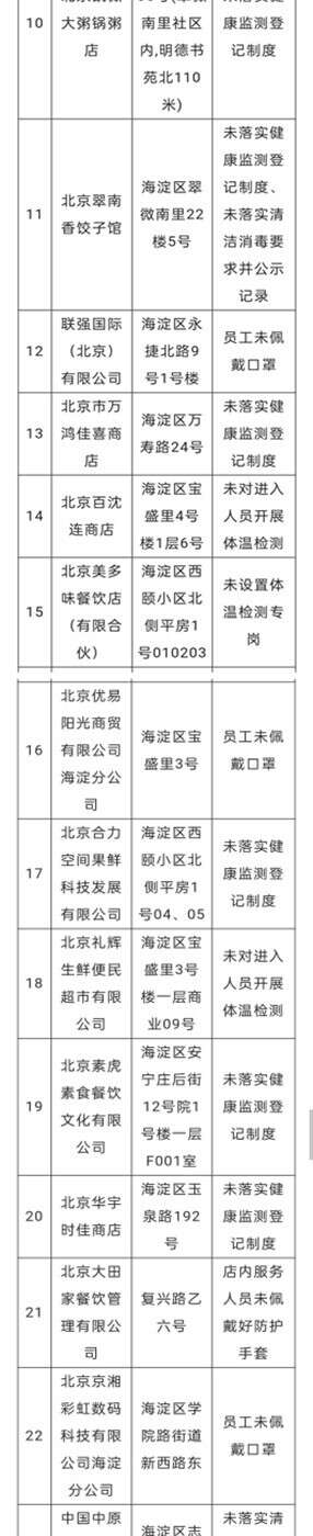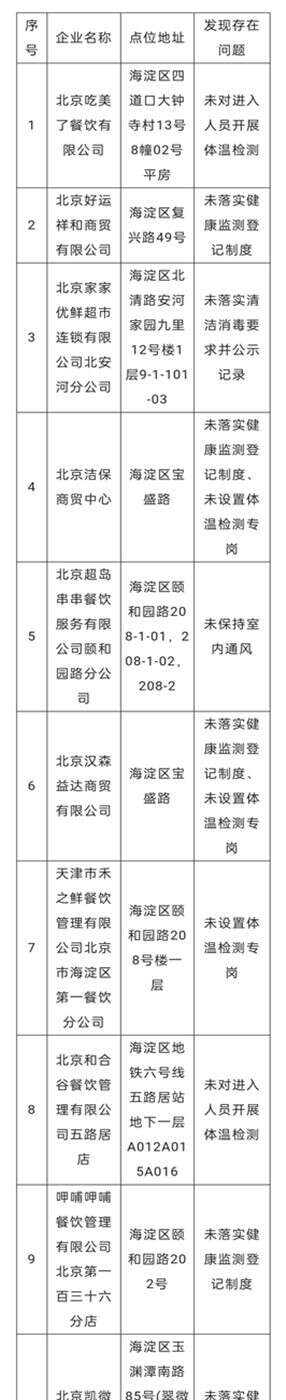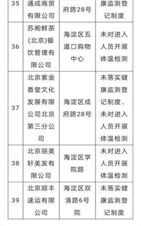 北京市海淀区复工复产防控组对海淀区各单位疫情防控措施落实情况进行了监督检查,发现存在一些防控责任不落实、防控不到位的典型问题,现将有关情况通报如下:
