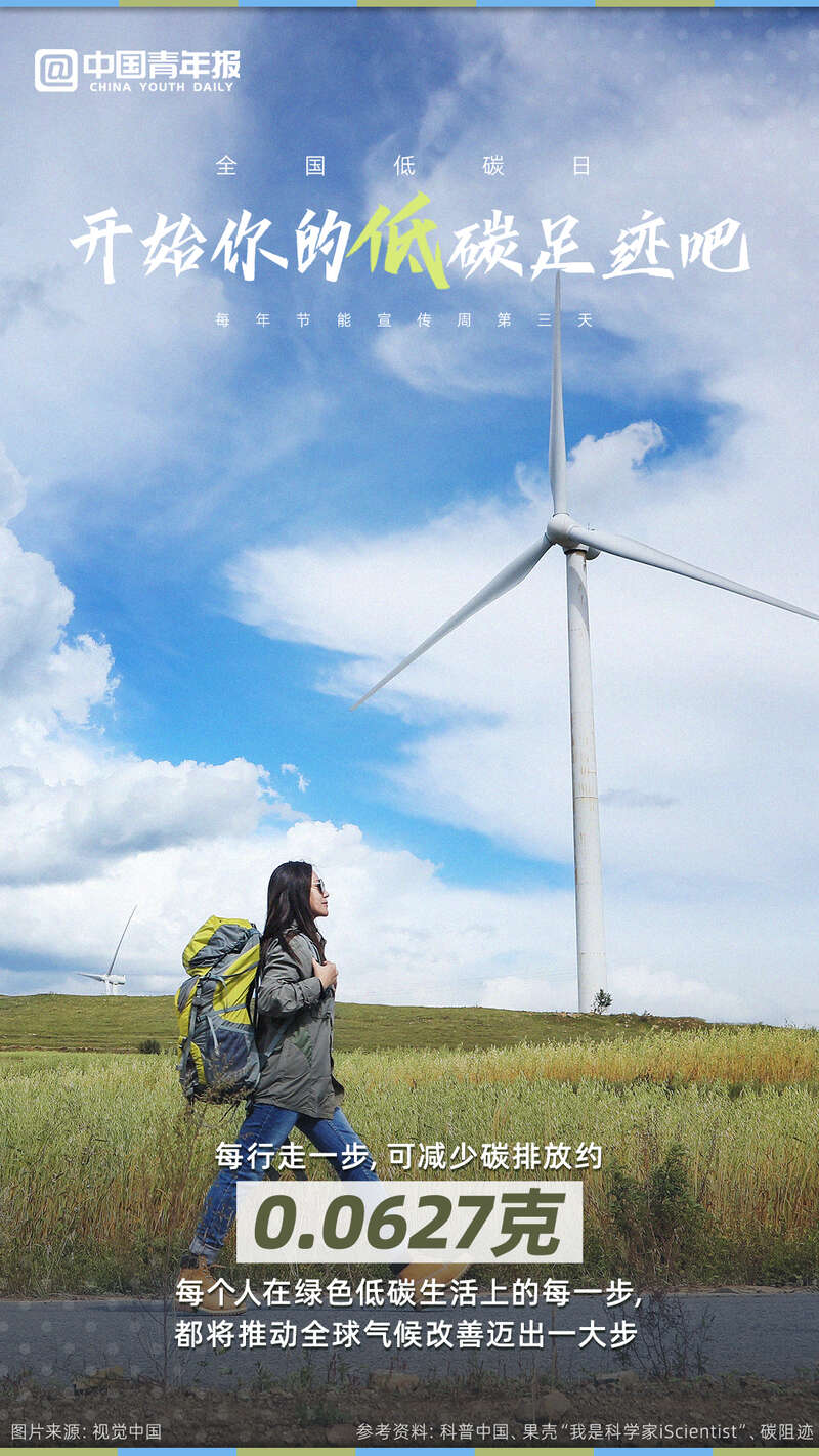绿色出行,每走一步,能减少约 0.0627克碳排放。你在绿色低碳生活上的每一步,都是人类善待地球的点滴。今天是2022年全国低碳日,每年节能宣传周的第三天即是全国低碳日。看图了解低碳小知识,走出你的低碳足迹吧。