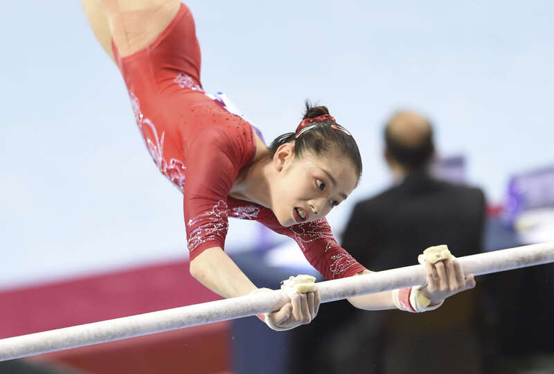 6月15日,韦筱圆在高低杠比赛中。当日,在卡塔尔首都多哈举行的第9届亚洲体操锦标赛暨2022年(亚洲区)世界体操锦标赛资格赛高低杠项目预赛中,中国选手韦筱圆以15.000分排名第一,晋级决赛。新华社发(尼库摄)