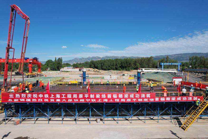 6月13日12时,随着最后一车混凝土缓缓浇筑到箱梁模具内,由中铁上海工程局承建的集大原(集宁经大同至原平)铁路4标原平制梁场首榀箱梁成功浇筑,标志着原平制梁场正式投入生产,为后期箱梁预制及架设奠定了基础。