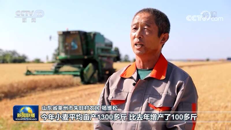 山东省莱州市朱旺村农民 杨维松:今年小麦平均亩产1300多斤,比去年增产了100多斤。每亩节本增效200多元,效益非常可观。