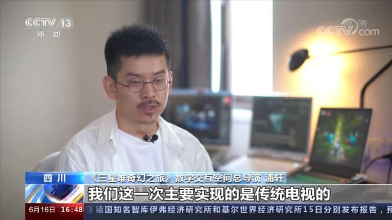 《三星堆奇幻之旅》数字交互空间总导演 浦轩:这是一次传统电视的“破屏”和“破圈”行为。我们通过即时云渲染技术,实现了“千人千面”,不同网友登录会获取不同的体验,从此迈入全新的交互内容传播时代。