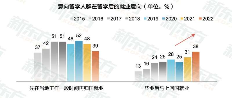 中国青年报客户端讯(中青报·中青网记者 孙庆玲)6月16日,新东方《2022中国留学白皮书》(以下简称“白皮书”)发布。白皮书显示,选择毕业后回国发展的意向留学人群所占比例近3年持续上升,今年这一比例已达38%,国内飞速发展的经济水平以及疫情下严格的防疫态势等,让他们对国内的就业及学习生活环境更有信心。