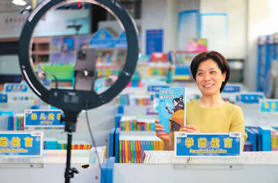 江苏省泰州市新华书店工作人员在进行线上好书推荐直播。