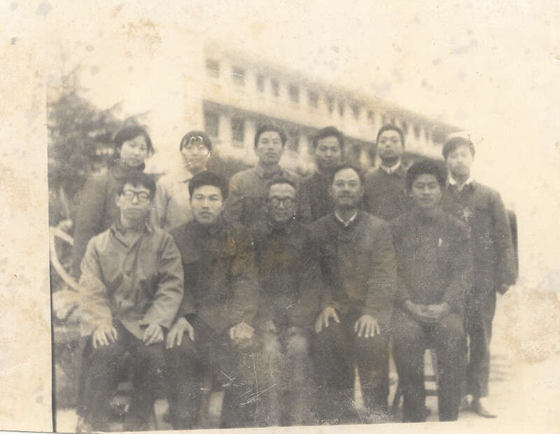 (留校实习生与大学班主任郭二男合影,后排右一为王才林,前排右二为郭二男)