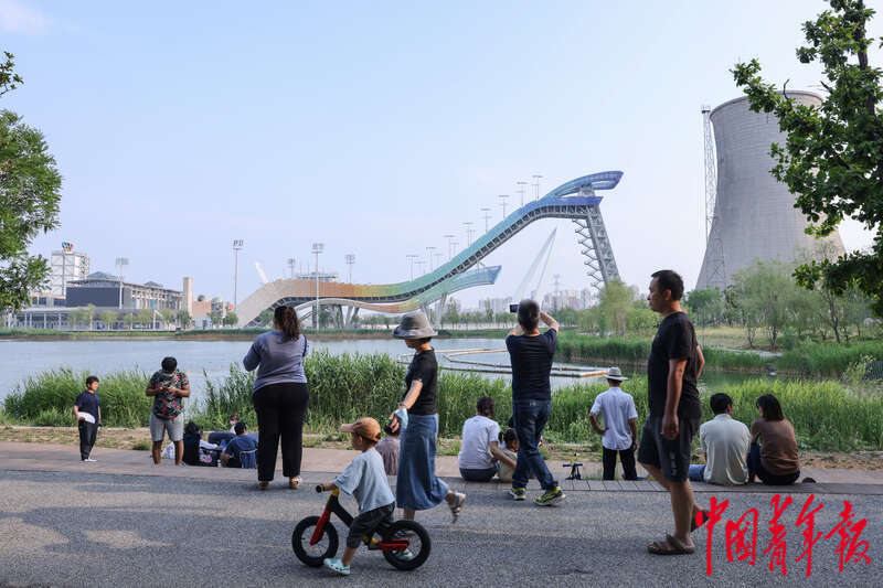 6月12日,北京首钢园,人们在滑雪大跳台对面的岸边休息。疫情下,首钢园仍是市民游客们周末休闲的热门目的地。北京冬奥会结束后,首钢滑雪大跳台、“冬奥之环”等标志性建筑物持续吸引众多游人前来参观“打卡”。目前,首钢园实行限流预约入园,入园需提供健康宝绿码和72小时内核酸阴性证明。中青报·中青网记者 曲俊燕/摄