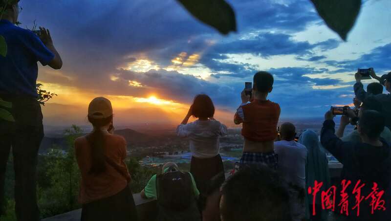 6月14日傍晚时分,北京百望山森林公园,市民在山顶赏日落景色,等待月升。当晚,一轮“超级月亮”现身夜空,这也是2022年度“第二大满月”。中青报·中青网记者 李建泉/摄