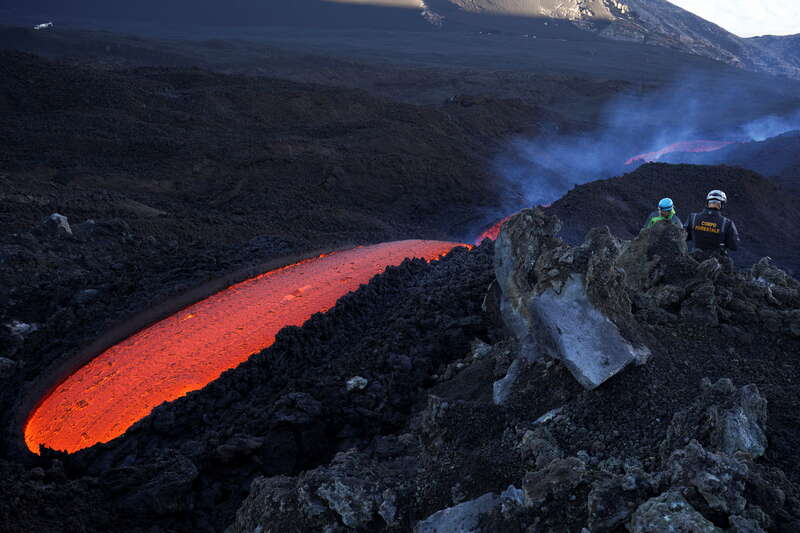 6月11日,在意大利扎费拉纳-埃特内阿,工作人员观测埃特纳火山。埃特纳火山位于意大利南部西西里岛,是欧洲最高活火山,也被认为是地球上最活跃的火山之一。新华社/路透