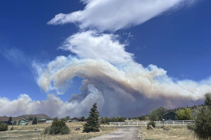 这是6月13日在美国亚利桑那州弗拉格斯塔夫拍摄的山火产生的浓烟。美国西部多州近期再次经历山火。亚利桑那州北部弗拉格斯塔夫市多山地草地,市郊12日报告燃起山火,目前过火面积大约20平方公里。新华社/美联