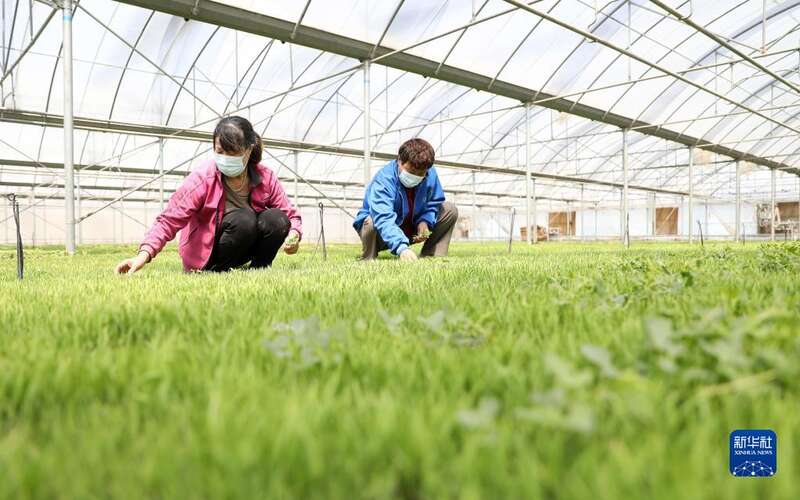4月26日,工人在辽宁省盘锦市太平凯地农机服务专业合作社的育苗棚里进行水稻秧苗管理。新华社记者 姚剑锋 摄