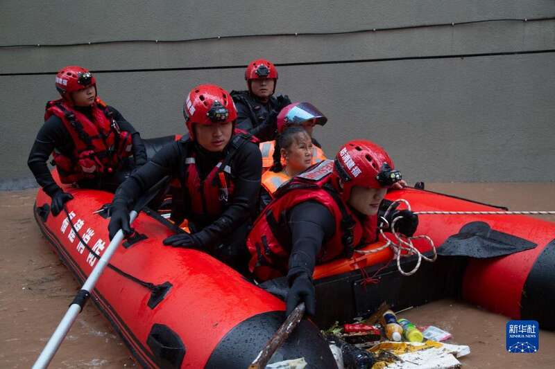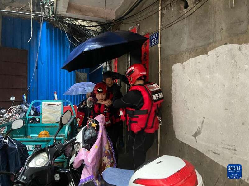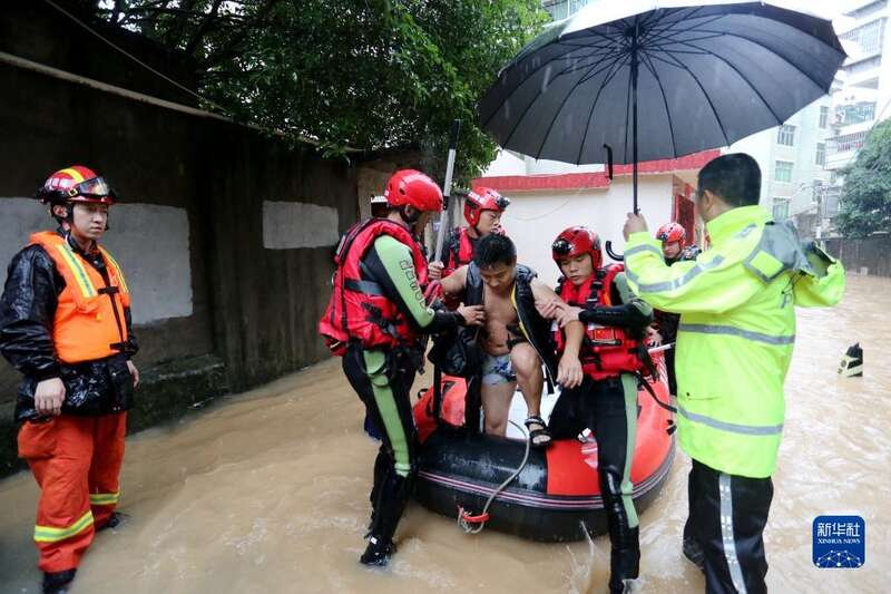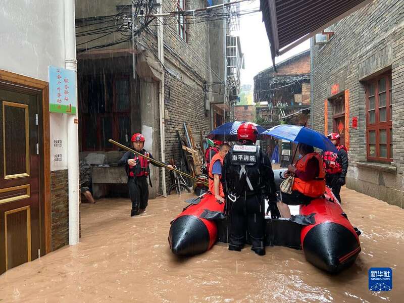 连日来,福建省南平市遭遇强降雨。南平市于18日18时启动防暴雨洪水I级应急响应。强降雨导致城区多处积水,当地消防立即出动转移群众。新华社发