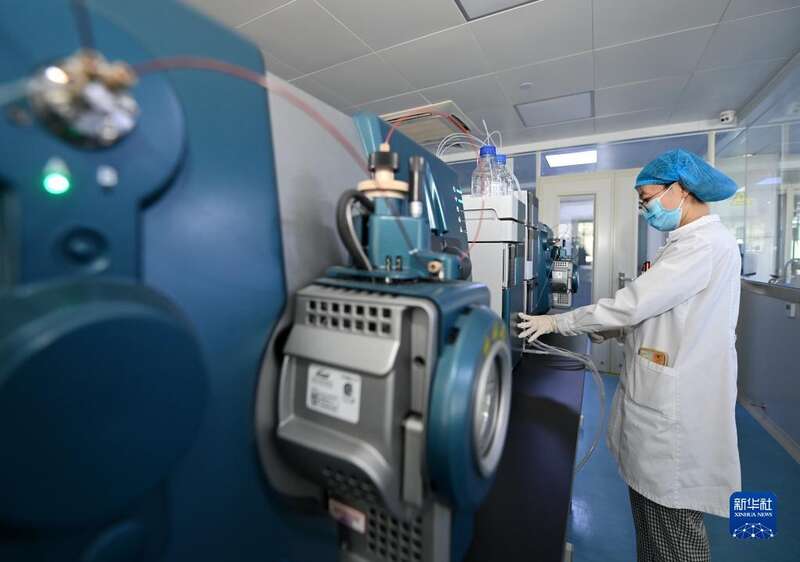 6月17日,在位于秦创原总窗口所在地陕西省西咸新区的西安区域医学检验中心,技术人员操作设备检测脂溶性维生素群含量。新华社记者 李一博 摄