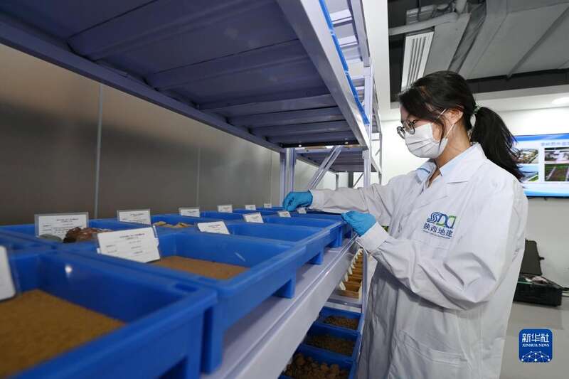 6月17日,在位于陕西省西咸新区的秦创原国企创新中心,科研人员在整理土壤样本。新华社记者 李一博 摄
