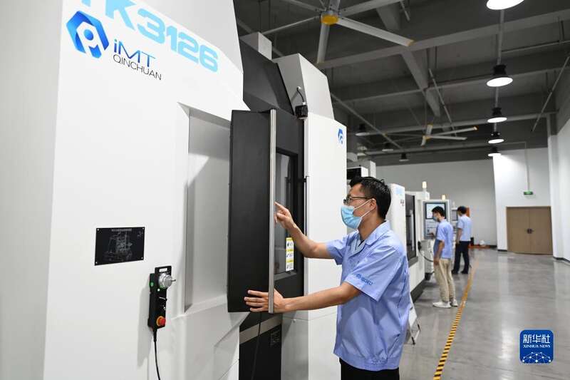 6月17日,在位于秦创原总窗口所在地陕西省西咸新区的陕西高端机床创新研究院,技术人员在调试智能机床。新华社记者 李一博 摄