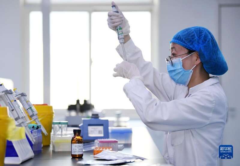 6月17日,在位于秦创原总窗口所在地陕西省西咸新区的西安区域医学检验中心,技术人员在做新生儿筛查的前处理工作。新华社记者 李一博 摄