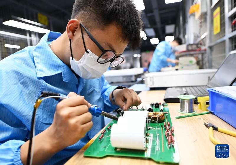 6月17日,在位于秦创原总窗口所在地陕西省西咸新区的西安威思曼高压电源有限公司,工人在加工制作高压电源。新华社记者 李一博 摄