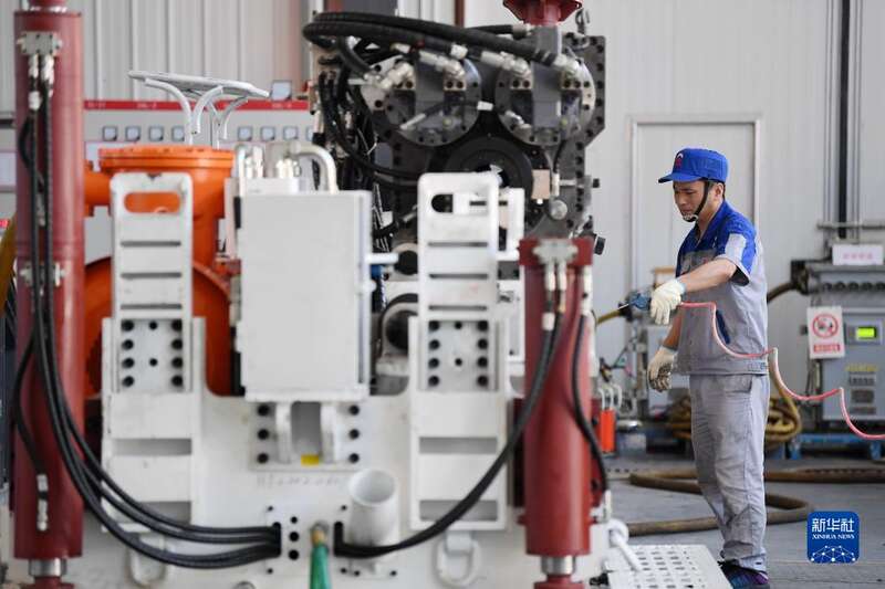 6月17日,在位于秦创原总窗口所在地陕西省西咸新区的陕西太合智能钻探有限公司,工人准备对智能定向钻机进行性能调试。新华社记者 李一博 摄