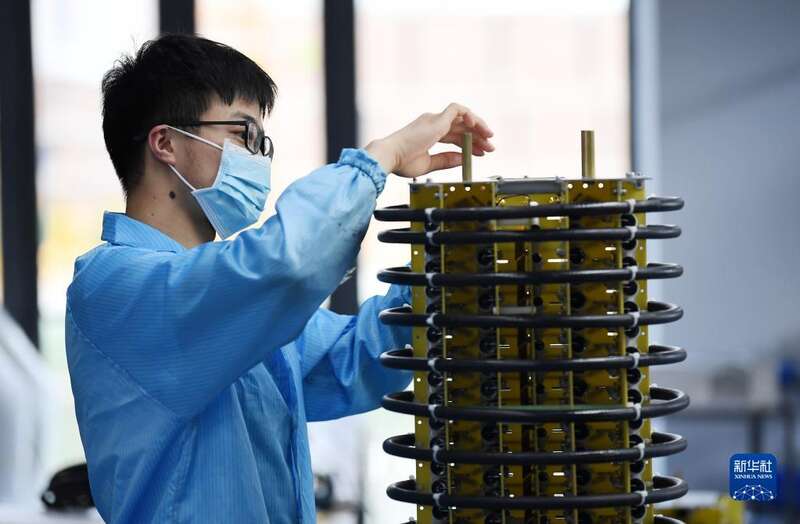 6月17日,在位于秦创原总窗口所在地陕西省西咸新区的西安威思曼高压电源有限公司,工人在加工制作塔式高压电源。新华社记者 李一博 摄