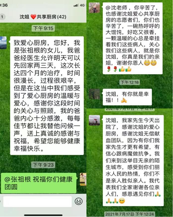 有人算过账,按照每天煤气、水电、调料的用量,每个月沈姐在共享厨房上至少要花费3500元到4000元。唯独沈姐自己从来没仔细算过,她只是尽自己所能。因为经济条件有限,起初,她设定了一些“规矩”,如厨房只对丽水市人民医院、丽水市中心医院的血液病和肿瘤病人开放,但其他医院的一些病患慕名而来,她又“心软”了:“别人有困难,总要搭把手!”