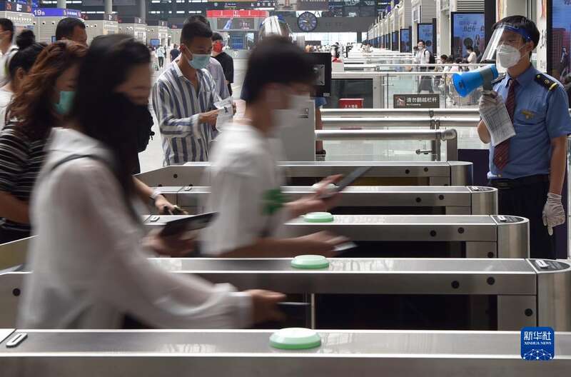 6月20日,乘坐郑渝高铁G3403次列车的旅客在郑州东站进站乘车。